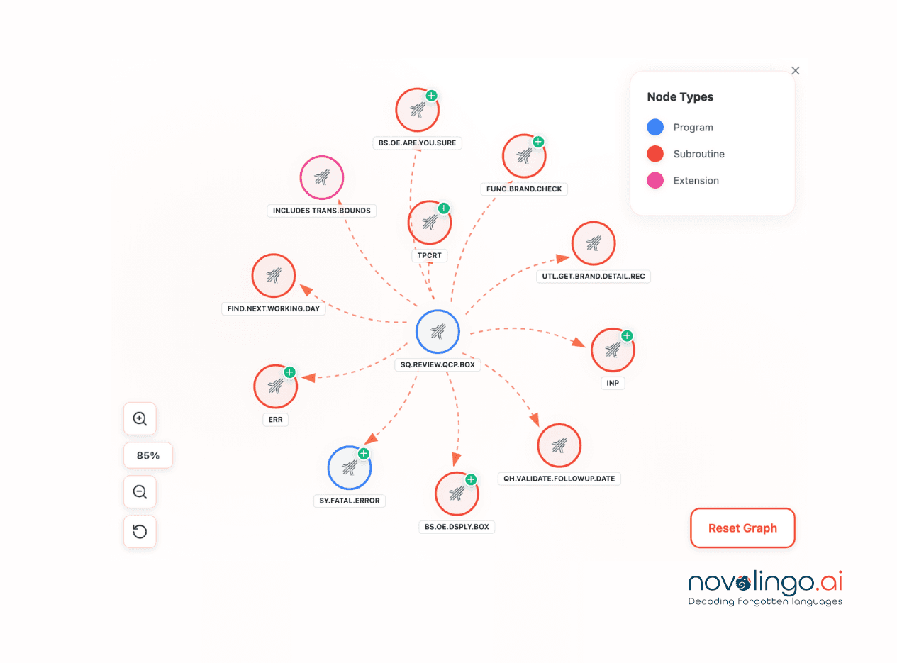 Gain full visibility and understanding of your heritage platform ecosystem - uncover hidden business rules, dependencies, risks and opportunities for optimization through advanced Al-driven analysis.