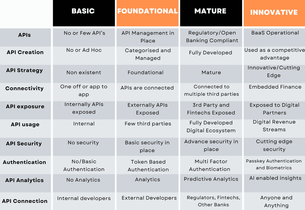In this article, we explore the 4 stages of API maturity (Basic, Foundational, Mature to Innovative) that we have seen in the market. By examining this model, banking executives and decision makers can better understand their current position and chart a roadmap to becoming a digital leader in the hyper competitive banking industry. We at Mitra AI believe that these insights are crucial not only for enhancing customer satisfaction but also for future-proofing banking operations in an increasingly competitive digital environment.